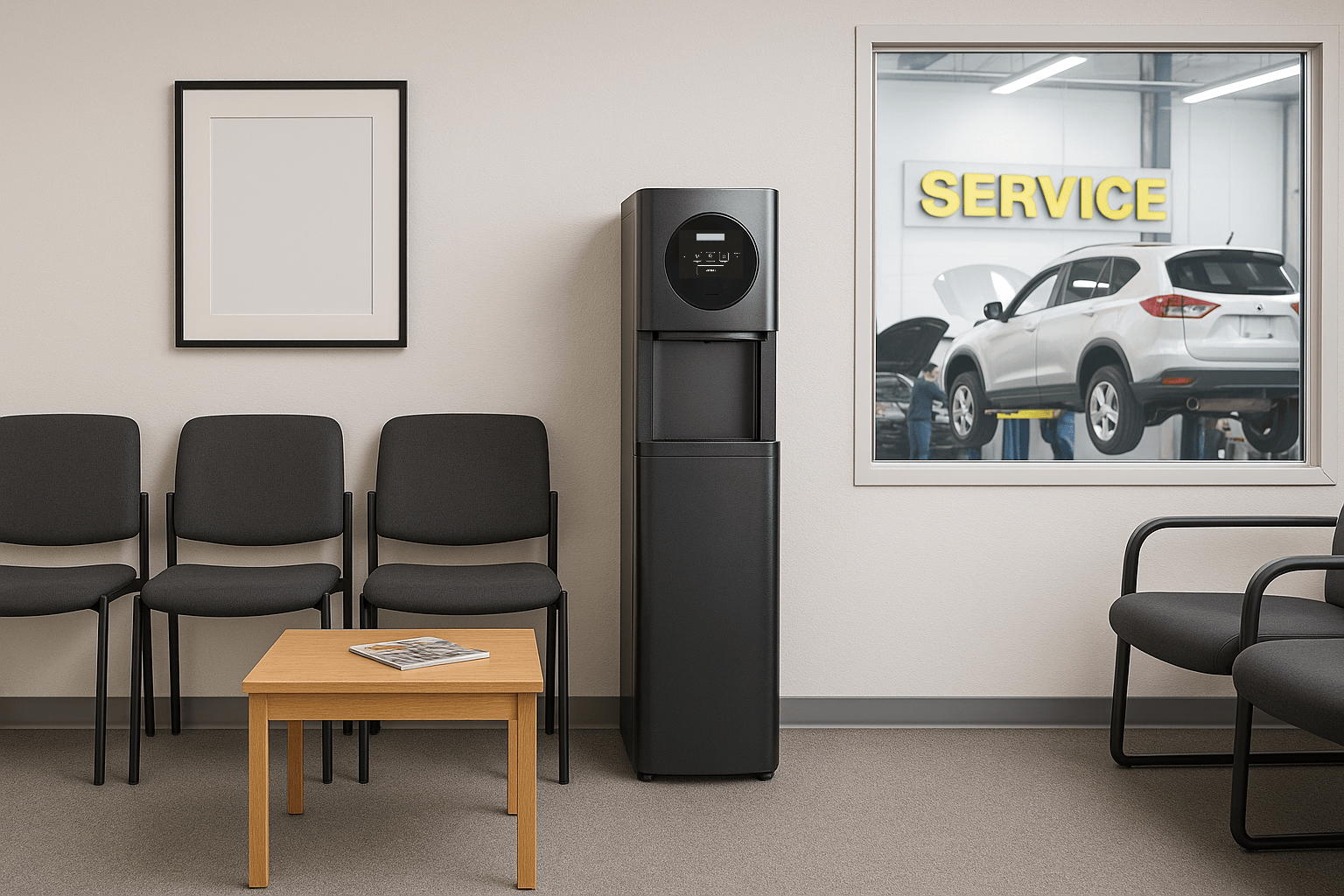 Whether placed in a customer lounge, showroom desk, cashier station, or technician break room, our compact units deliver reliable water and ice without clutter or constant attention. They help create a more welcoming experience for customers while supporting service teams who move quickly from bay to bay.